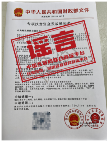 经相关部门核查,该通知为不实信息,系典型诈骗手段。警方提示,收到来历不明的快递,不要轻信其中的内容,更不要扫描快递上的二维码;收到此类“政策”文件,一定要向有关部门求证,不要轻信网上非官方的报道信息,切勿随意扫描不明二维码。(来源:“湖南省互联网举报中心”微信公众号)